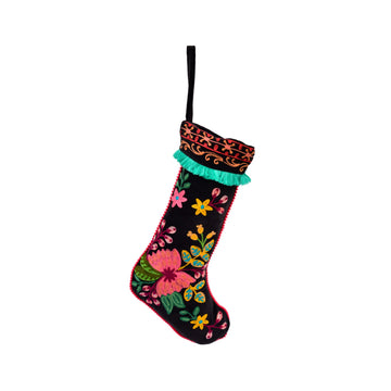Holiday Stocking Floral Black Velvet 12" x 23"